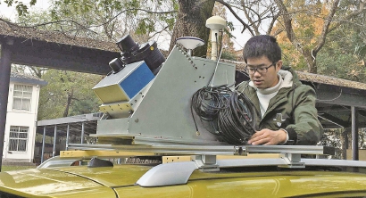 右图:同济大学研发的移动激光扫描神器保障城市三维可视化、轨道变形监测高精化