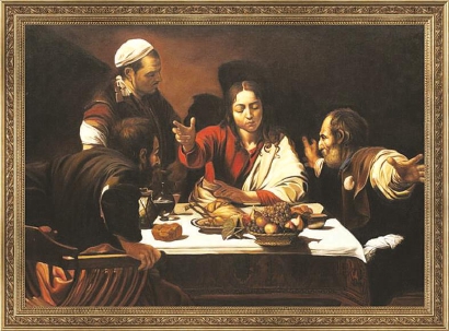 本世纪初,英国画家霍尼克进一步发现,借助光学器材作画的绝不仅维米尔一个人。这份名单列出来有一长串,其中不乏人们耳熟能详的名家,扬·凡·艾克、霍尔拜因、伦勃朗、哈里斯、委拉斯开兹等都在其列,几乎贯穿15世纪以后的西方绘画史。霍尔拜因和卡拉瓦乔就是林凤生援引的两个典型例子。霍尔拜因生活的年代比维米尔早一个多世纪,在他36岁的力作《大使》中,画家使用光学器具的蛛丝马迹清晰地留在画面上。这幅画画的是塞尔夫主教受法国天主教会的委托来访英国时与当时法国派驻英国的丹特维尔大使的一次秘密会见。画面中的鲁特琴、地球仪等很多物件都被刻画得一丝不苟,然而,画中两个人物——主教与大使之间,却出现了一片让人辨不清的呈对角线状的东西,看上去极不协调。正是这个极少出现在绘画中的变形图像暴露了画家使用光学器具的事实。再看比维米尔大了约半个世纪的卡拉瓦乔。据说他作画速度极快,并且从不画素描。那他画面中看上去极为写实的造型是如何练就的呢?霍克尼认为他的独门秘笈正是光学器材。比如卡拉瓦乔在《以马忤斯的晚餐》中就露出“马脚”——画中右边的圣徒,离观者较远的右手看上去竟然比离观者较近的左手还要大。似乎拥有超写实绘画能力的卡拉瓦乔,怎会犯如此低级的错误?霍尼克的理由是,这正是画家在重新对焦过程中变动透镜和画板距离的结果。