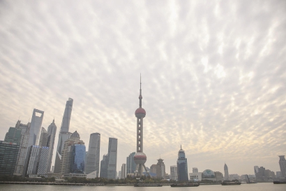 右图:昨日午后,申城陆家嘴地区上空云层较厚,阳光从云层间隙透露出来。本报记者 叶辰亮摄