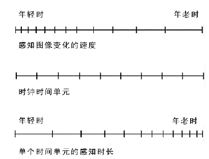时间正在“心灵之眼”中发生,它与大脑所形成的心理图像数量,以及大脑的状态有关。随着年龄不断增长,感知心理图像变化的速度会降低,因为一些物理特征发生了变化,包括视觉、大脑的复杂性,以及后来在生活中信息传递路径的退化。大脑图像处理能力的这种变化导致我们的时间感加速。