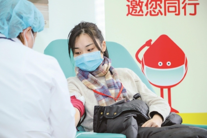 上海交通大学医学院瑞金临床医学院学生以无偿献血的方式为抗击疫情贡献力量。 (院方供图)