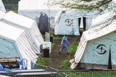 5月3日,一名医务工作者走在美国纽约中央公园的临时医院内。 新华社发