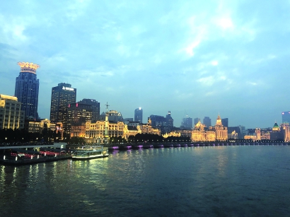 从船上眺望外滩滨江,夜上海美如画。 本报记者 徐晶卉摄