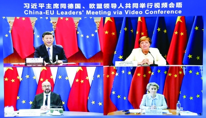 新华社北京9月14日电 国家主席习近平14日晚在北京同欧盟轮值主席国德国总理默克尔、欧洲理事会主席米歇尔、欧盟委员会主席冯德莱恩共同举行会晤,会晤以视频方式举行。中德欧领导人就中欧关系深入交换意见,为下阶段中欧关系规划方向,确定重点领域,一致同意加强沟通协调合作,确保今后中欧之间一系列重大政治议程取得成功,深化互信,实现互利共赢,坚持维护多边主义,共同应对全球性挑战,推动中欧关系迈向更高水平。◆下转第三版(上接第一版)中欧双方宣布签署《中欧地理标志协定》,确认加快中欧投资协定谈判,实现年内完成谈判的目标。中欧决定建立环境与气候高层对话和数字领域高层对话,打造中欧绿色合作伙伴、数字合作伙伴关系。