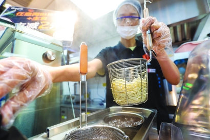 ◆便利店店员为顾客现场煮面。本报记者 张伊辰摄