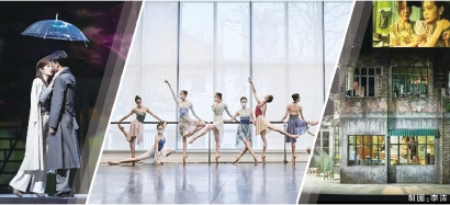 左:舞台剧《繁花》在2020年末再度收获票房与口碑。(上海文广演艺集团供图)中:2020年,上芭“戴口罩跳芭蕾”上了次全网热搜。(上海芭蕾舞团供图)右:戏剧与影像结合,让原创悬疑剧《深渊》迅速“出圈”。(上海话剧艺术中心供图)