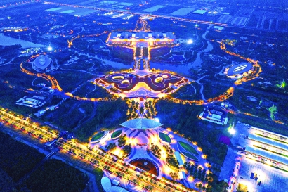 花博园日前举行了多轮灯光测试,灯火勾勒下的花博园犹如繁星点缀,分外璀璨。 本报记者 邢千里摄