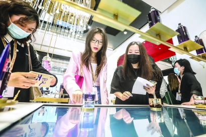 新开业的美妆品牌旗舰店吸引了大批女性消费者前来“打卡”。本报记者 袁婧摄
