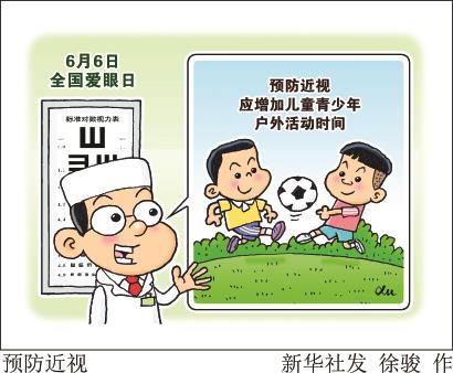 漫画《预防近视》 新华社发 徐骏作
