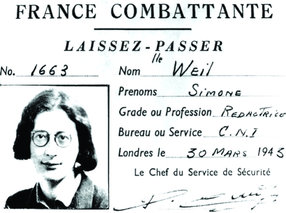 在和家人逃离了被纳粹占领的法国之后,心系祖国的薇依痴迷于一个想法,那便是跟随医护兵空降到敌军后方。她的这一“自杀式提议”被戴高乐否决,随后她被赋予了另一项任务——为法国的政治、精神重建准备报告。1943年,薇依死于肺结核,年仅34岁。验尸官发现,长期的营养不良加重了她的病情——因她控制进食,绝不超过敌占区同胞的食物定量标准。她的家人称她为“安提戈涅”,她的同学们则给她取了这样的外号:“穿着裙子的‘绝对律令’”。