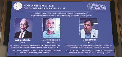 2021年诺贝尔物理学奖昨天揭晓,由三位科学家分享:一半授予日裔美籍科学家真锅淑郎和德国科学家克劳斯·哈塞尔曼,另一半授予意大利科学家乔治·帕里西,以表彰他们在理解复杂物理系统方面作出的开创性贡献。图/视觉中国
