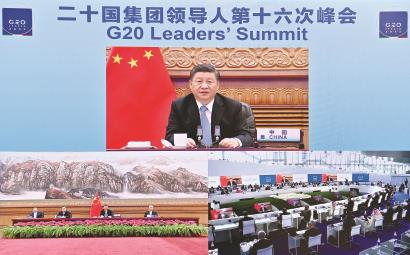 10月31日晚,国家主席习近平在北京继续以视频方式出席二十国集团领导人第十六次峰会。新华社记者 李学仁摄