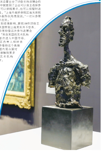 众多艺术作品亮相进博会,离不开上海海关创新优化通关便利举措。今年,为便利参展商办理相关手续,上海海关和国家会展中心(上海)在跨境贸易大数据平台进博会专窗中增设“进博会展期内销售确认功能”,方便参展商办理免税进口手续,实现展期内展品销售确认无纸化。另外,海关还在布展期间根据企业申请,在展馆实地实施查检作业,避免企业在海关查检和布展环节两次开箱作业,切实提高参展商品通关效率。