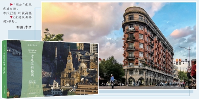 ◆“网红”建筑武康大楼。本报记者 叶辰亮摄 ◆《老建筑新格调》书影。 制图:李洁