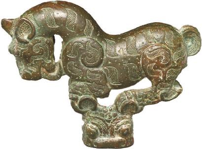 美国人类学家路易斯·亨利·摩尔根在《古代社会》中揭示了远古先民自然崇拜与图腾产生的社会基础。在茹毛饮血、风餐露宿的洪荒时代,人类与大自然互动的能力极其微弱,“万物如刍狗”,为了活着,生存下去,远古先民只能在磨难中不断进化自己。说起来,这个过程也是很复杂的,比如,偶然状况下动物留下没有吃完的猎物,也许人类就会认为是特意留给自己的,出于感恩而崇拜;更多的则是在凶恶的猛兽面前深感无能为力,出于畏惧而崇拜。《山海经·海内北经》记:“穷奇状如虎,有翼,食人从头始,所食被发,在犬北。一曰从足。”穷奇,外貌像老虎,长有一双翅膀,喜欢吃人,更会从人的头部开始进食,是一头凶恶的异兽,中国神话传说中的古代四凶之一。远古先民认识动物与自然界,不可能按照当今生物学或动物学的标准,面对体大健硕、矫健勇猛、呼啸而过的虎,先民们逐渐感受到它的强者风范、王者之气,“弱肉强食”的生存法则成为远古先民崇拜虎的前提——既然认识到虎是一种强而有力、充满威势的可怖形象,不能驯服它,那就崇拜它。