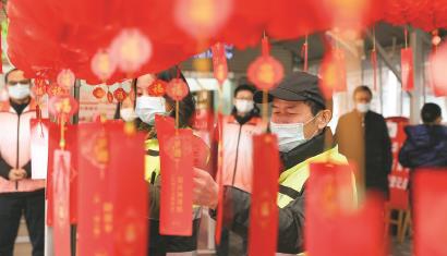 昨天,徐汇区总工会联合区文明办、区绿容局等单位在徐汇环卫职工之家举办“欢乐闹元宵,五福送到‘家’”——徐汇一线职工元宵大联欢活动。近600名一线职工参加了活动。图为滨江建设者在猜灯谜。