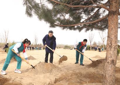 在京中共中央政治局委员、中央书记处书记、国务委员等参加植树活动。