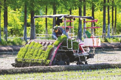 本报讯(记者薄小波 通讯员何洁)昨日立夏,沪郊金山区廊下镇万亩粮田中白鹭翻飞,农户抓住当前气温适宜的有利时机栽插秧苗,插秧机来回穿梭作业,田间地头一派忙碌景象。据悉,目前廊下镇万亩粮田“八月香”节水抗旱稻开始春耕插秧,5月20日之前将完成1200亩插秧任务,8月即可开镰收割,新大米预计于8月份上市。
