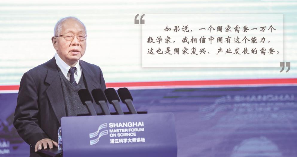 丘成桐在浦江科学大师讲坛上发表演讲。 本报记者 袁婧摄 制图:冯晓瑜