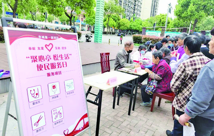 居民区党支部了解到小区居民的日常生活需求后,将每月5日定为“聚心亭、悦生活”便民服务日,整合结对共建单位、小区党群志愿队伍等资源,发挥小区商铺业主特长,共同为居民提供“家门口”服务。