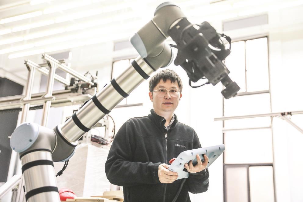 在上海大界宝山实验室,胡雨辰在对专门为工业机器人开发的设计系统进行测试。 本报记者 袁婧 摄