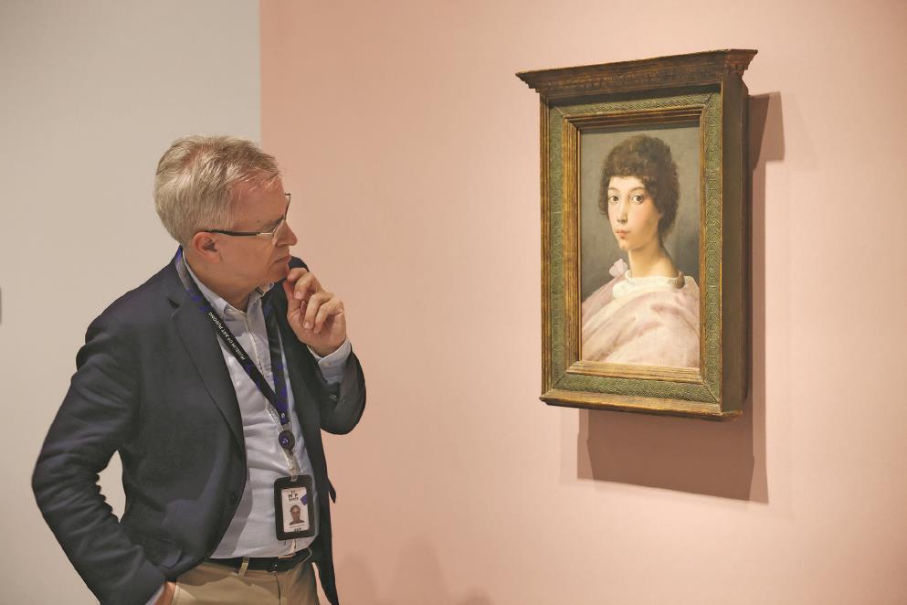 提森博物馆馆长吉列尔莫·索拉纳凝视拉斐尔及其助手的《年轻男子肖像》。摄影:徐大伟