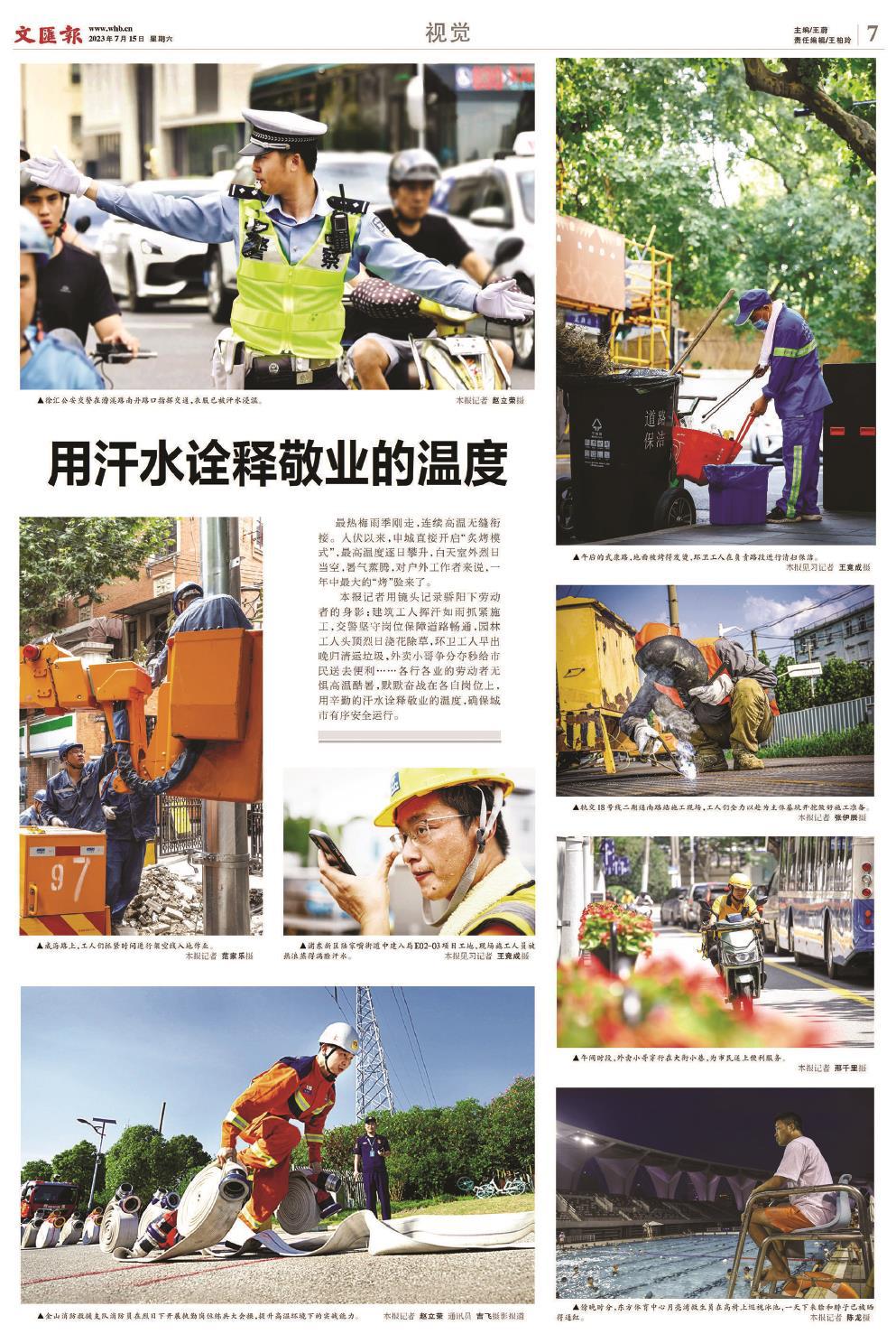 建筑工人挥汗如雨抓紧施工,交警坚守岗位保障道路畅通,园林工人头顶烈日浇花除草,环卫工人早出晚归清运垃圾,外卖小哥争分夺秒给市民送去便利……各行各业的劳动者无惧高温酷暑,默默奋战在各自岗位上