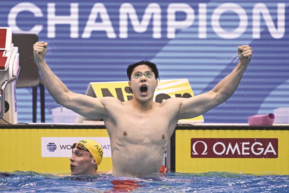 如愿拿下蛙泳项目金牌“大礼包”,覃海洋也成为史上首位在单届世锦赛包揽同一泳姿50米、100米和200米金牌的选手。除个人项目外,他还在男女4×100米混合泳接力项目中与队友携手站上最高领奖台。