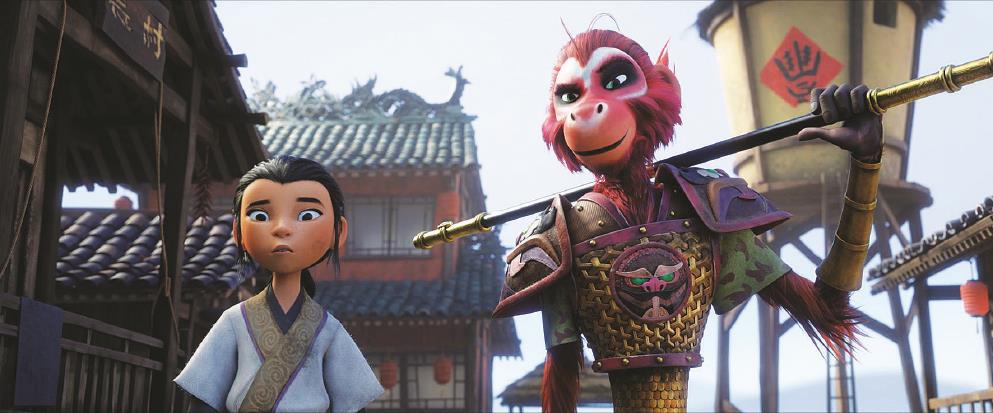 如果这是一个中国故事,或许从琳的视角出发叙事会更加流畅。然而,动画电影《美猴王》是一个美国人做出来试图面向世界观众的故事,它舍不得美猴王这个响亮名号的市场号召力,又担心不熟悉西游故事的观众不清楚猴子的性格,硬生生地把一段看上去像人物小传、背景故事的东西塞到了电影开头。猴子看着像主角,但在行为动机、人物成长性上都远不如琳,成了实际上的配角。