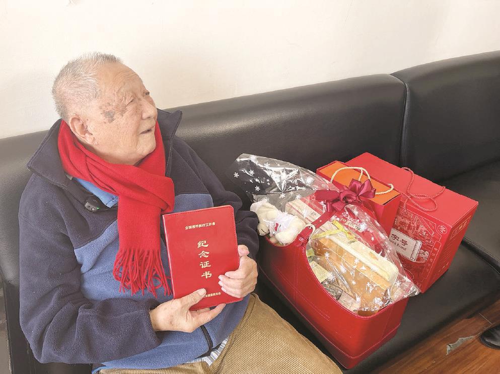 临近春节假期,记者随上海市卫生健康委一行拜访张老,为他送上“全国援外医疗工作者纪念证书”,聆听这位世纪老人深情讲述海外行医的往事。