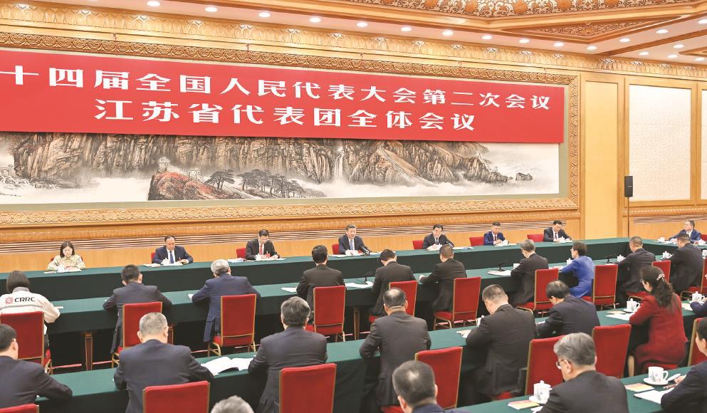 3月5日,中共中央总书记、国家主席、中央军委主席习近平参加他所在的十四届全国人大二次会议江苏代表团审议。 新华社记者 岳月伟摄