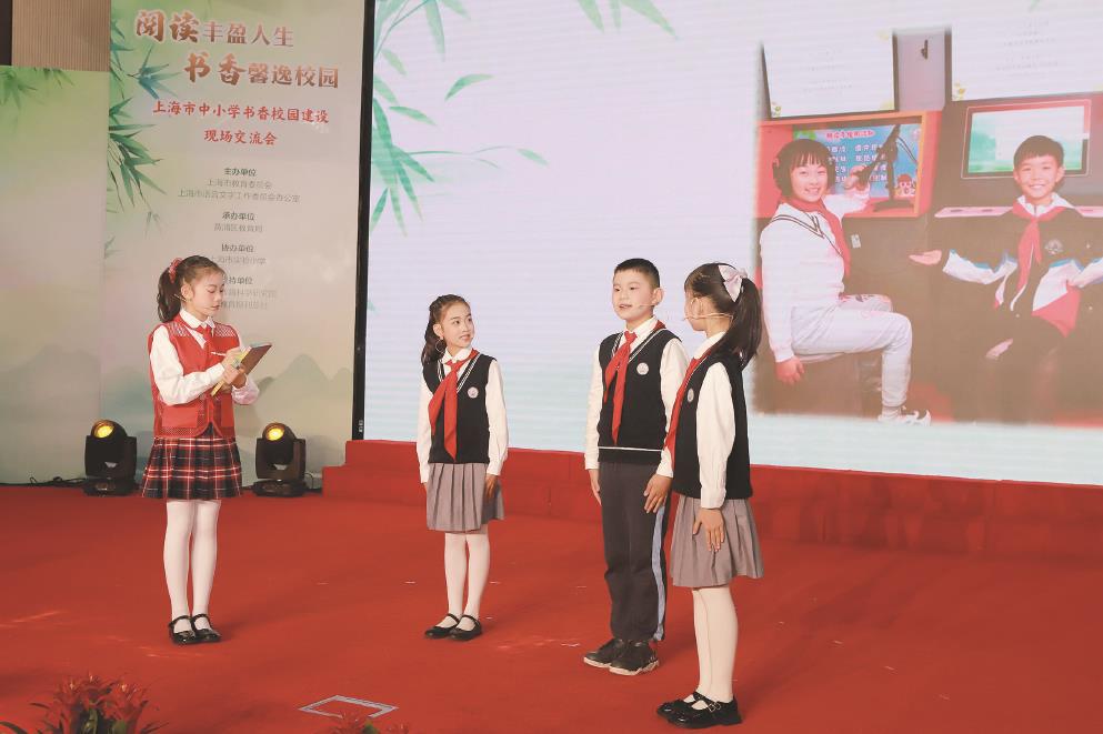 上海市实验小学学生表演情景剧《书香满园,润心启智》。 谈乐达 尹佳凝 摄