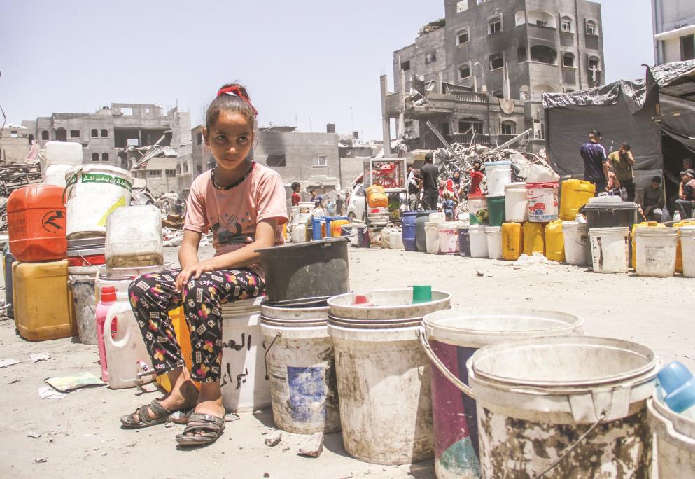 世界卫生组织东地中海区域主任哈南·巴勒希4日说,新一轮巴以冲突对加沙地带民众的基本生活和医疗产生重大影响,一些加沙人目前只能喝污水、吃动物饲料。巴勒希呼吁立即增加对这一地区的援助。图为6月4日,在加沙地带北部杰巴利耶难民营,一名女孩等待取水。新华社发