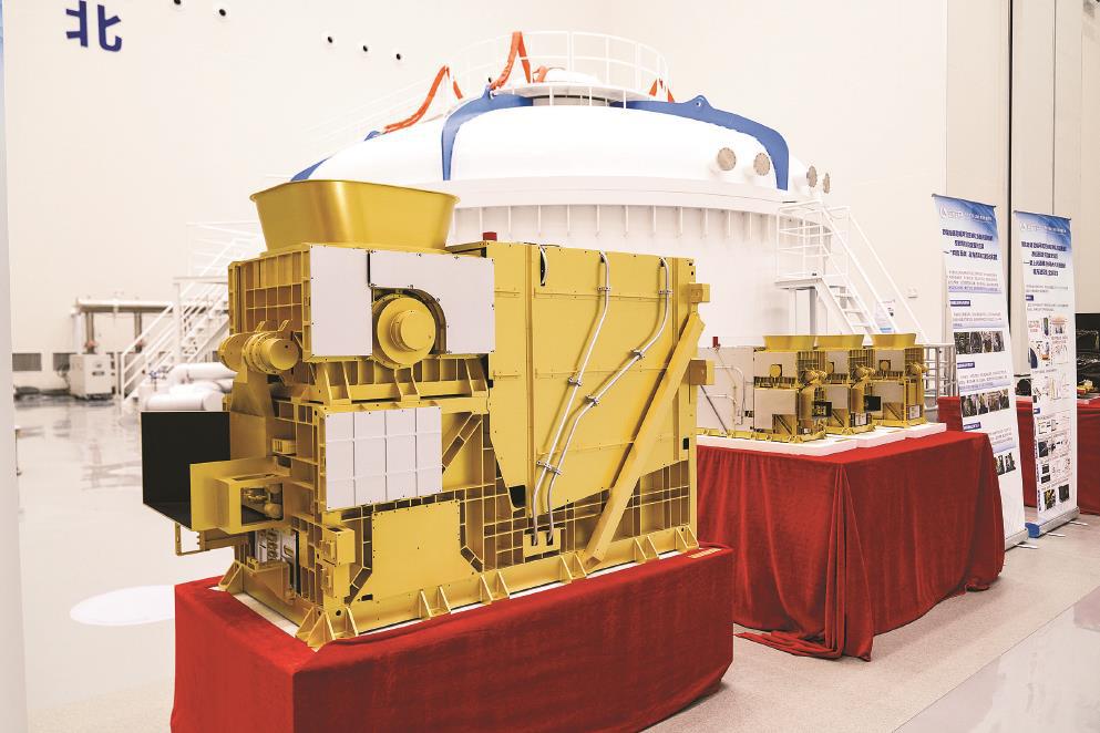 高分五号卫星宽谱宽幅高光谱相机正样飞行件(1∶1模型)。 本报记者 邢千里摄