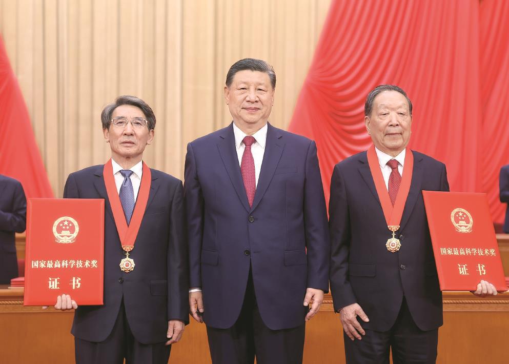丁薛祥宣读《中共中央、国务院关于2023年度国家科学技术奖励的决定》。(决定全文另发)