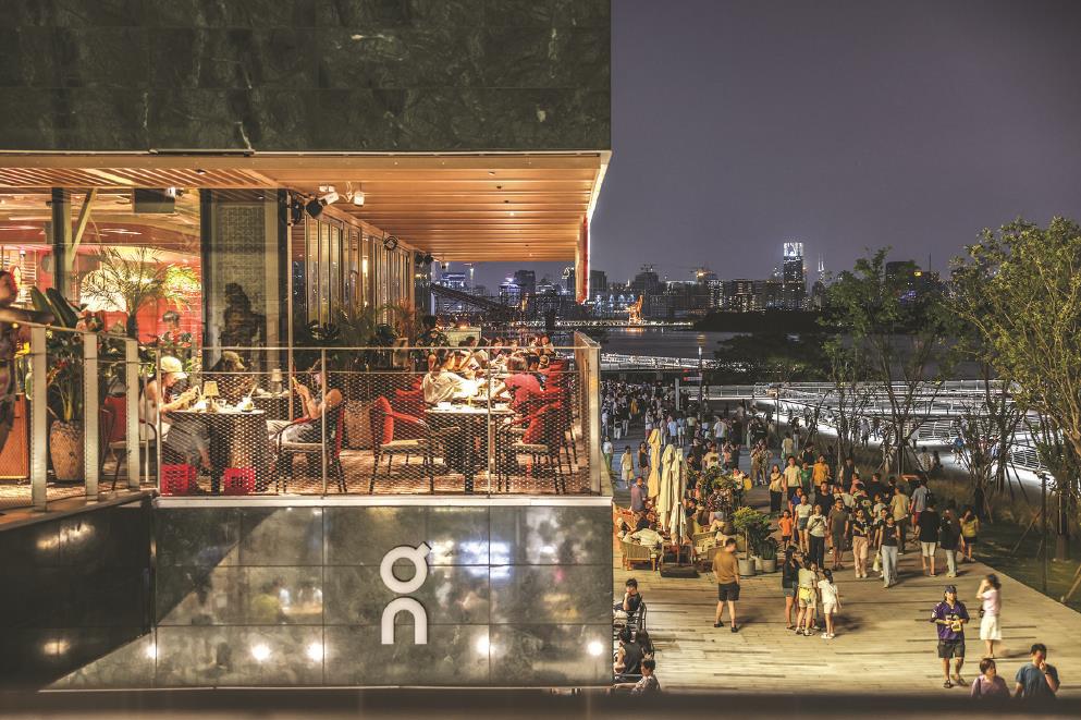 Gate M西岸梦中心通过滨江景观、穿梭步道、餐饮外摆等规划布置,成为临水漫步、游逛休憩的生活秀带。 本报记者 袁婧 摄