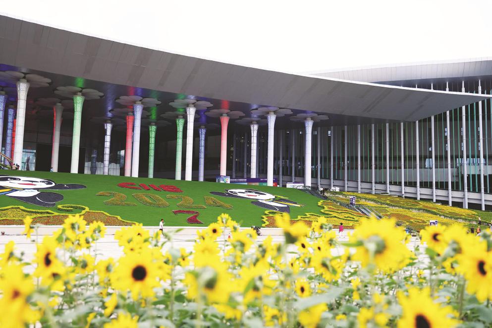 国家会展中心(上海)南广场花团锦簇,迎接即将开幕的第七届进博会。 图/东方IC