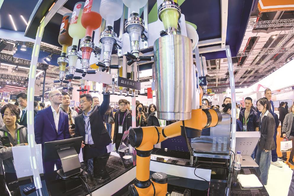 第七届进博会技术装备展区西门子展台的AI迷你调酒工厂。 新华社记者 张铖摄