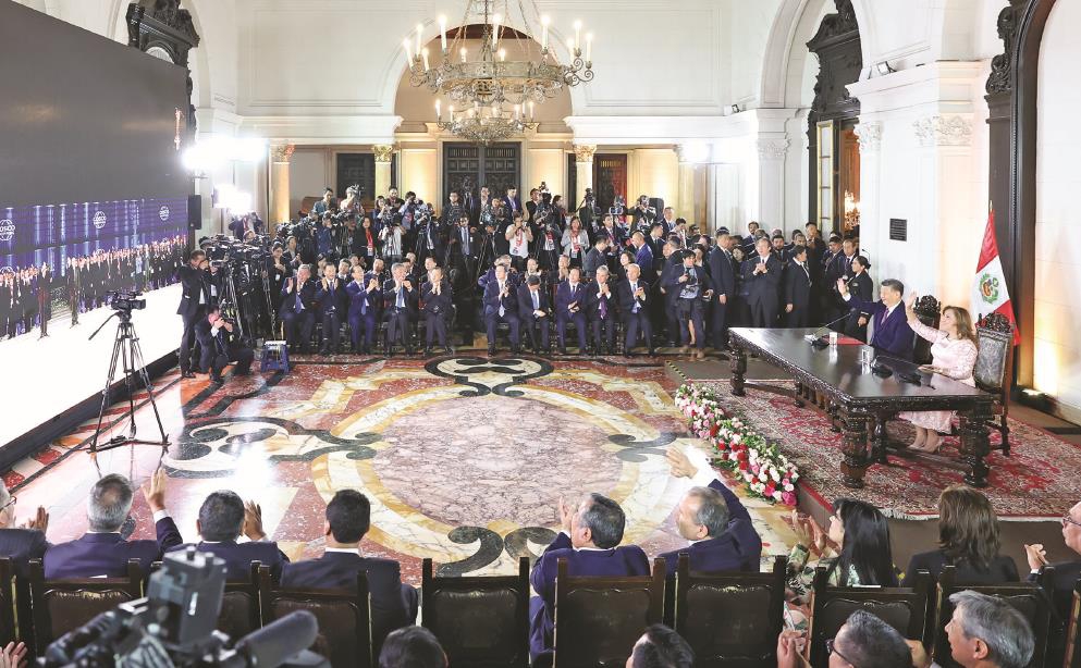 会谈后,两国元首共同见证签署《中华人民共和国政府与秘鲁共和国政府关于共建“一带一路”的合作规划》《中华人民共和国政府和秘鲁共和国政府自由贸易协定升级议定书》,并见证交换经贸、产业投资、工业园区、教育、绿色发展等领域多项双边合作文件。