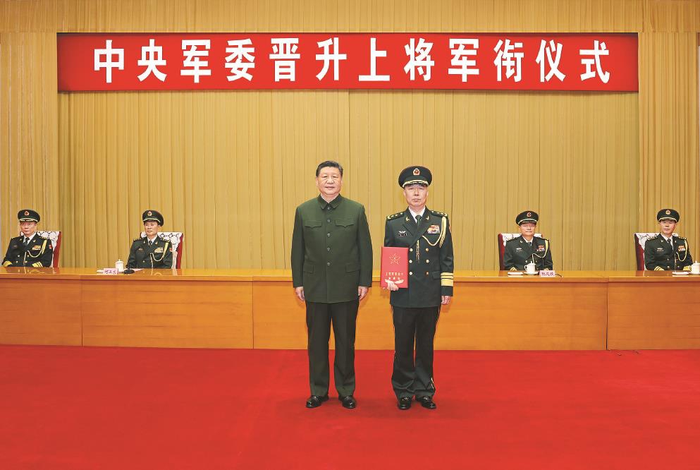 上午10时许,晋衔仪式在庄严的中华人民共和国国歌声中开始。中央军委副主席张又侠宣读了中央军委主席习近平签署的晋升上将军衔命令。中央军委副主席何卫东主持晋衔仪式。