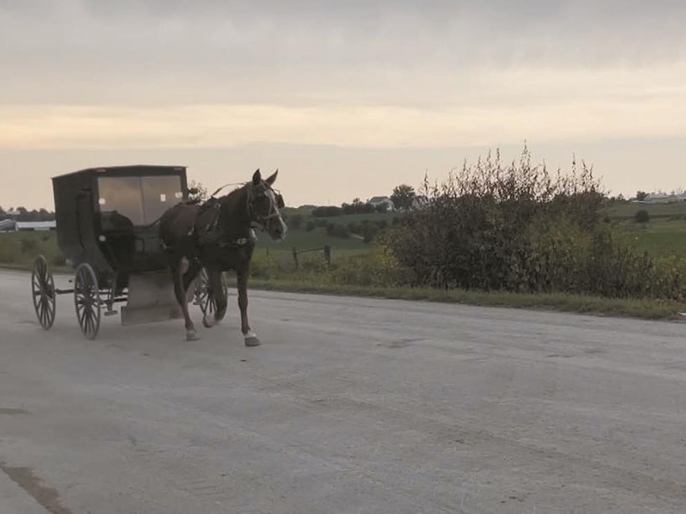 阿米什人的马车奔跑在田间(本文配图均 王占黑 摄)