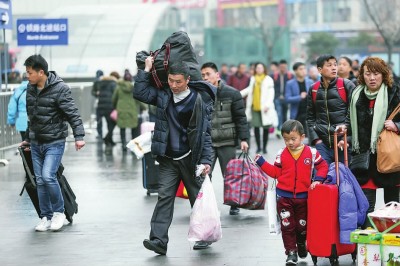 春节长假刚刚过去,春运也进入下半程。受客流叠加影响,沪上各大机场、车站迎来返程高峰。昨天下午在铁路上海站北广场,旅客带着大小行李回到上海。