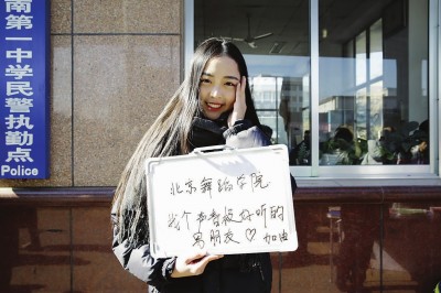 近期,全国各地艺术院校的艺考正在开展。在某考点,一位报考音乐剧专业的女生晒出她梦想的大学是北京舞蹈学院。
