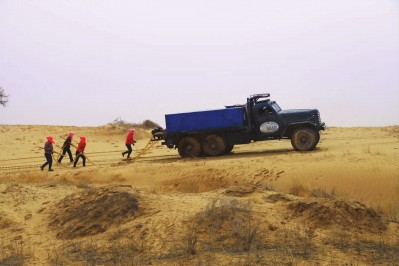 虽然仍是春寒料峭的季节,但甘肃省武威市民勤县各乡村的造林队已早早集聚老虎口治沙造林现场。在麦草方格中挖坑、栽梭梭、浇水,村民们各司其职忙碌着,每道工序都严格按照要求进行,每人每天栽树浇水能完成近三亩地。