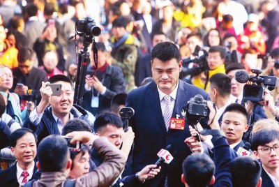 全国政协十二届五次会议开幕前,刚当选为中国篮协主席的全国政协委员姚明抵达会场后遭到大批记者围堵。面对记者的“长枪短炮”和连珠发问,姚明沉默不言,在安保人员的护送下迅速“突围”。