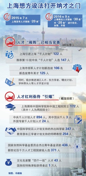 肩负建设具有全球影响力的科技创新中心重任的上海,2015年出台人才新政“20条”,2016年,人才新政又迅速更新到“30条”。凤栖梧桐,中外人才纷至沓来,引得进、留得住、用得好———他们,正在上海撸起袖子加油干。