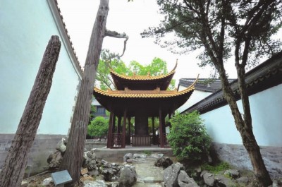 在文澜阁园林中,记者看到一株有着一百六十余年历史的古柏。光阴流转,古柏阅尽了文澜阁百年来的沧桑变化。
