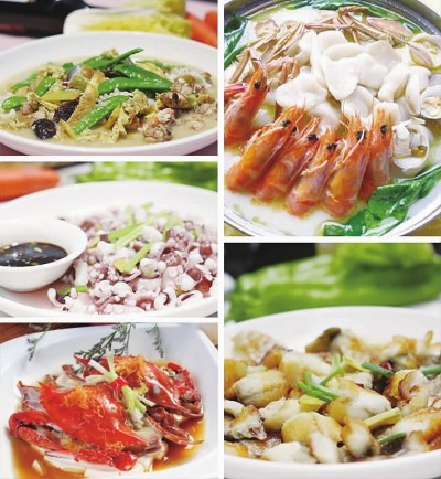 东海海鲜由于特殊的地理环境和长江富有营养的江水滋养而特别鲜美,玉环的东海小海鲜更是“鲜中带甜、种类繁多”。在玉环,你可以去海鲜馆品尝地道的清水煮的原味海鲜;也可以去排档,伴着涛声,尝尝肥美梭子蟹,感受千桌共餐的场面;还可以去渔村品尝由渔家姑娘现场用木槌敲击鱼肉做成的鱼皮馄饨、鱼面、鱼饼等玉环特色美食。