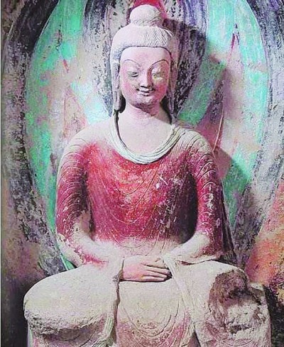 在敦煌259窟,在右手边并不显眼的地方有一座北魏禅定佛(439—534),她高髻披发,两耳垂肩,细眉圆眼,双腿盘坐,两手相握,秀骨清姿,娴雅尊贵。讲解员用一支小手电模拟日出到日落的光照变化,当人们循光照所至凝神细看:日出时禅定佛的嘴角微微下垂似乎因思索众生之苦而愁忧,当手电筒光换了角度,禅定佛的神情在光影变幻中发生了触动心弦的奇妙变化,她的嘴角变得上扬,露出得道的心领神会的微笑,那就是莫高窟中的“东方微笑”。庄严与曼妙,神秘和温婉,佛像的每一个细节无不自然和谐地演绎出内心世界的涌动,似乎寻常可见,却又尊贵无比,恍如究其凡生而难以企及。
