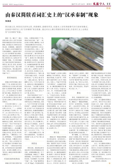 由秦汉简牍看词汇史上的“汉承秦制”现象